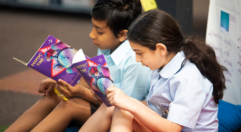 Students reading in the St Bernadette's Catholic Primary Lalor Park library